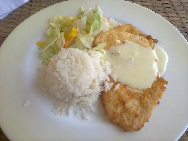 Suvalgius sriubą antrojo patiekalo laukti ilgai irgi nereikėjo. Kepsniui - taip pat jokių priekaištų, ryžiai - birūs ir skanus, o štai šviežių salotų galėjo būti šiek tiek daugiau.