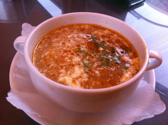 Sriuba, pagardinta grietine ir papuošta pjaustytomis petražolėmis - gardi ir šildanti. Duonos niekas nepasiūlė, bet ir nepasigedau. Smulkmena, bet padavėjui nešant sriubą, apsilaistė dubenėlio kraštai. Kadangi ant stalo buvo servetėlių - tai nedidelė problema.