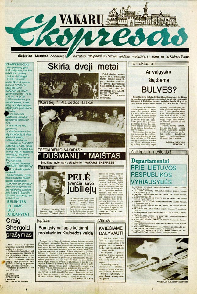Lyg nujausdami būsimą kultinę laikraščio žvaigždę, jo redaktoriai Edui Vaičkui suteikė vietą pirmajame puslapyje. Tiesa, žemiau už išsamią informaciją apie tai, kur ir kaip futbolo karalius Pelė žada švęsti savo 50-metį.