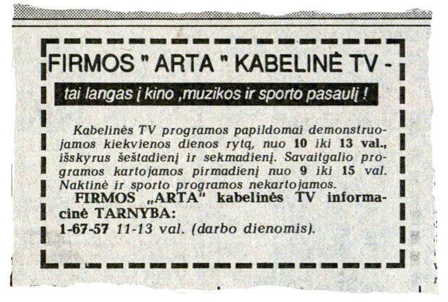 Dar apie pirmus kartus - būtent VE pirmasis pradėjo spausdinti miesto kabelinės televizijos programą. Tai buvo firmos "Arta" kabelinė TV, vėliau išaugusi į garsiąją "Balticum". O tada, jei prisimenate, ji rodė dvi skirtingas programas skirtingiems miesto rajonams: vieną - Vingio mikrorajonui, kitą - Debreceno.