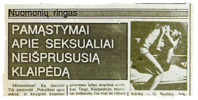 Niūrą ekonominę situaciją praskaidrinti bandė Edas Vaičkus, parašęs "Pamąstymus apie seksualiai neišprususią Klaipėdą". Juose labiausiai kliūva už 3 rublius knygynuose pardavinėtai kažkokio V. Smirnovo parašytai knygutei "Pokalbiai apie seksą".