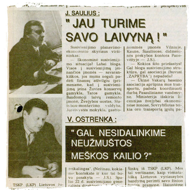 Žodžiu, kalbų buvo daug, emocijų - dar daugiau. O kiek sudeginta nervų! Pavyzdžiui, tuometinį susivienijimo direktorių Algimantą Šinkų įmonės komunistai net pašalino iš partijos. Ir koks rezultatas? Tarpinis - valstybinė žvejybos laivyno įmonė "Jūra". O galutinis? Nulis - žvejybinės pramonės Lietuva nebeturi...