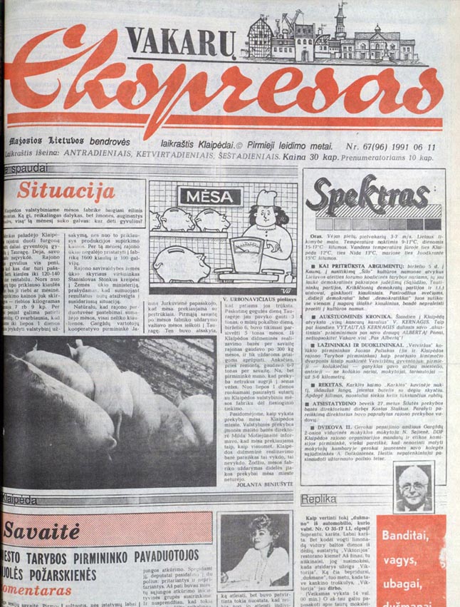 "Klaipėdoje be TSRS piliečio paso jo mašinos niekas neregistruoja. Todėl natūralu, kad Antanas dabar krapšto pakaušį: "Po velnių, kokiu geriau būti piliečiu, kad galėtum užregistruoti mašiną: TSRS ar LR?" Krapšto Antanas dar labiau pakaušį: "Kokiam žmogui tarnauja Klaipėdos valstybinė autoinspekcija ir kas tvirtina tuos biurokratus policininkus, kuriems pagrindinis dokumentas yra TSRS piliečio pasas?"