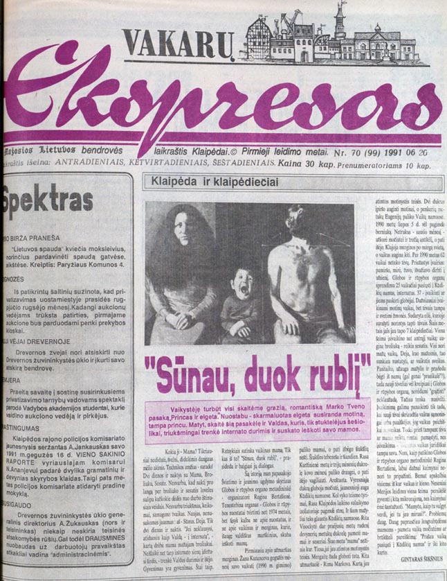 Beje, dar apie sovietų karius, tiksliau, jų atžalas. Policija sulaikė trylikametį Jurijų Varlyginą, 11-osios vidurinės moksleivį, kuris plėšė taksofono aparatus. Rastas ne tik laužtuvas, bet ir visa krūva kapeikų. Įdomu, ar buvo gėda jo tėvui - karinio dalinio vadui pulkininkui Nikolajui Varlyginui?