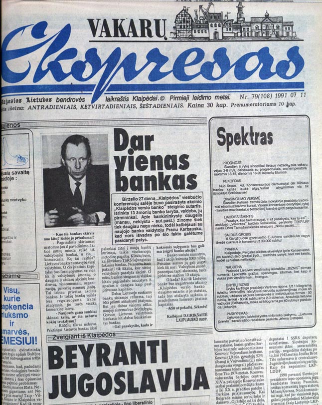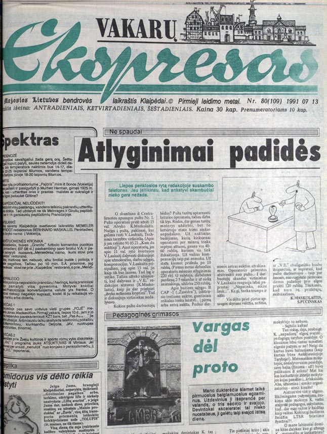 Ir Nerijus Kesminas. Po praktikos grįžęs į Vilniaus universitetą būsimasis sporto žurnalistas ir komentatorius vienas iš nedaugelio už praktiką "Vakarų eksprese" buvo įvertintas dešimtuku. Šlovę jam pelnė straipsnis apie klaipėdiečių roko grupę "Naujokai išeina į karą".