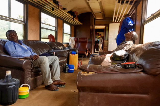 Kitą dieną atvyko traukinys. Durys neužsidaro, dalis langų iškritę, skylės grindyse, turi atsargiai vaikščioti, žiūrėti, kur koją dėti. Kai pamačiau, kaip atrodo sulūžusios sėdimos vietos vagonuose, supratau, kad turiu kažką daryti, nes ant jų tektų praleisti net 2 paras.
