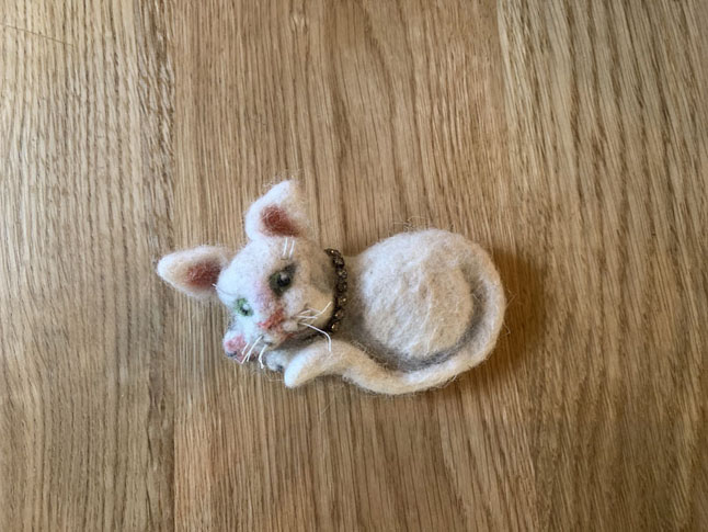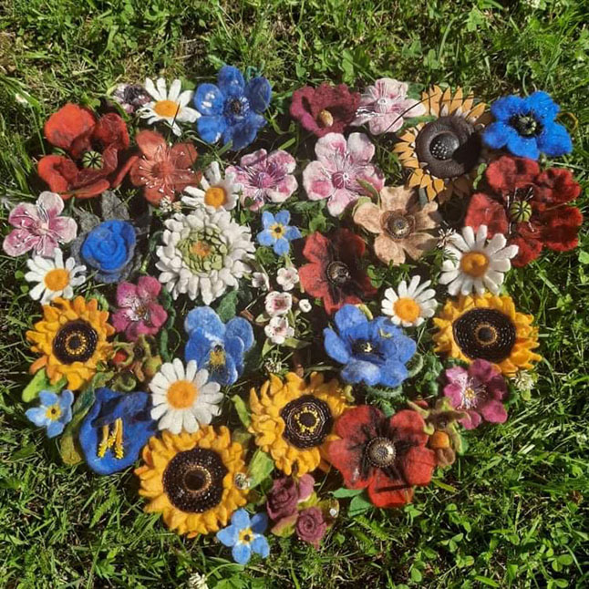 Tiesą sakant, neturėjau supratimo, nuo ko pradėti, bet turėjau noro ir vilnos. Pradėjau ne nuo kokių mažų gėlyčių, o iš karto nuo didelio darbo. Norėjau papuošti švarkelį iš vilnos nuveltomis saulėgrąžomis. Susidėliojau saulėgrąžas ant pilvo ir pyliau vandenį, nežinojau, kad reikia gėles prismaigstyti, privelti adatomis. Valandą pražaidusi užpyliau karšto vandens ir visos mano saulėgrąžos nuplaukė. Vis dar turiu tą švarkelį. Tik vėliau sužinojau, kad drabužį reikia iš pradžių paruošti tokiam dekorui, nes neparuoštas po skalbimo susitrauks.