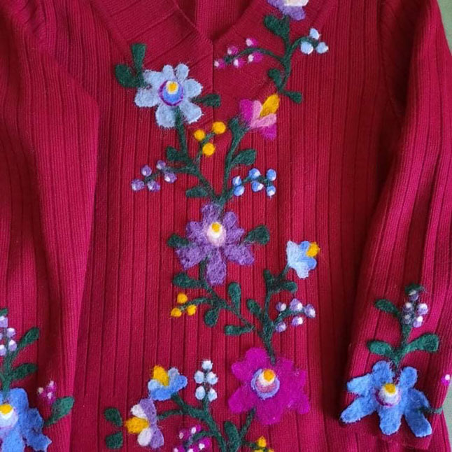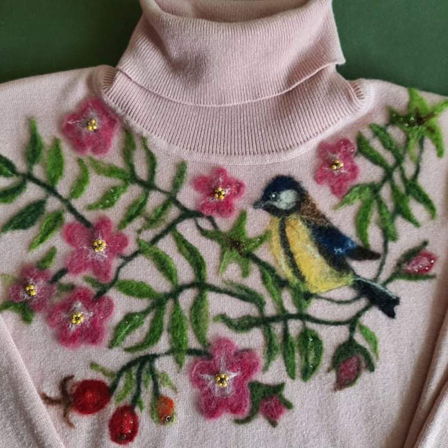 Labiausiai patinka dekoruoti rūbus, nes vilną lengva įvelti į bet kokį audinį.