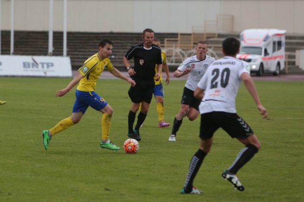 Maloniai stebina trenerių iš saugų į puolimo liniją pastūmėtas Rokas Gedminas. Jis jau septintą susitikimo minutę pabėgo nuo "Stumbro" gynėjų dešiniuoju kraštu, pergudravo varžovų vartininką Aleksandrą Sikorskį ir pasiuntė kamuolį į vartus - 1:0. Beje, Rokas pasižymėjo jau trečiose rungtynėse, įskaitant ir LFF taurės susitikimą Vilniuje, iš eilės.