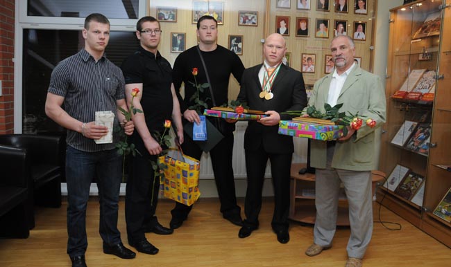 19-metis vaikinas, kuris praėjusį savaitgalį Bulgarijoje vykusiose pirmenybėse, dvikovėje surinko 375 kg (rovimas - 169 kg/stūmimas - 206 kg), sulaukė miesto valdžios dėmesio - uostamiesčio mero pavaduotojos Juditos Simonavičiūtės, Klaipėdos sporto centro direktoriaus Rimanto Vitkaus, Kūno kultūros ir sporto skyriaus vedėjo Irenijaus Zaleckio bei kitų pajūrio sporto valdininkų sveikinimų.