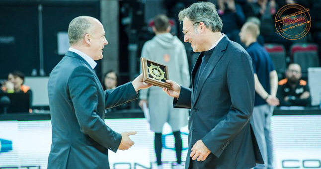 P. Cominos per rungtynių pertrauką buvo pakviestas į „Švyturio“ arenos vidurį ir „Neptūno“ klubo valdybos pirmininkas Vytautas Lygnugaris jam įteikė specialią „Neptūno“ dovaną – gintarinį vairą.