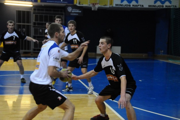 Rungtynes dragūniečiai pradėjo gana vangiai ir 3-iąją minutę atsilikinėjo 0-3, tačiau po truputį įsibėgėjo ir 8-ąją min. rezultatą išlygino, o vėliau persvėrė savo naudai. Kėliniui įpusėjus, klaipėdiečiai surengė keletą greitų atakų ir užbaigė pirmąją pusę 16:9.