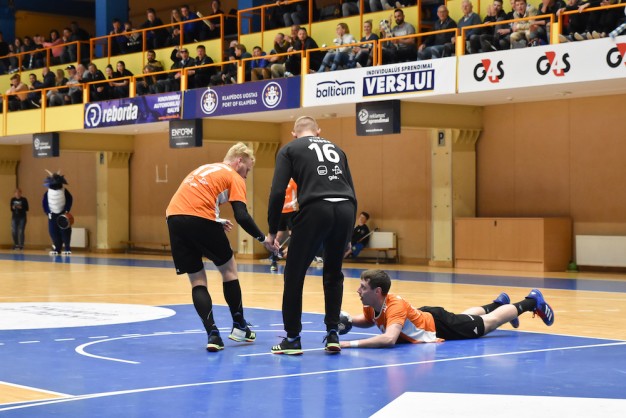 Komandos apylygiai žaidė iki pirmojo kėlinio vidurio – tada „Dragūnas“ pradėjo krautis solidesnę nei 1-2 įvarčių persvarą. Antroje kėlinio pusėje Klaipėdos komanda realizavo 9 metimus, vilniečiai – keturis. Po pirmojo kėlinio „Dragūnas“ buvo priekyje šešiais įvarčiais.