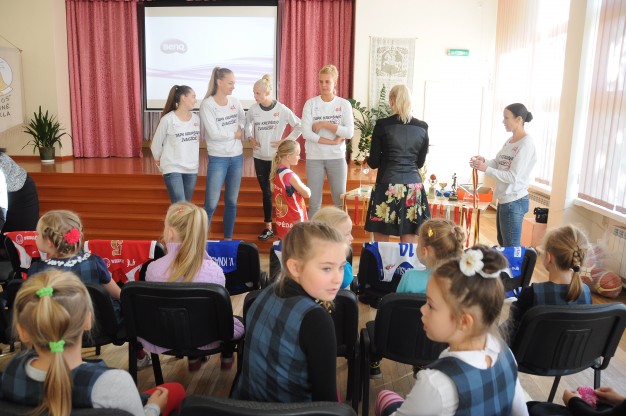Klaipėdietės kartu su šio projekto ambasadore Rima Valentiene, LMKL direktore Audra Ginelevičiene ir buvusia "Fortūnos" krepšininke Lina Pikčiute lankėsi Klaipėdos Gilijos pradinėje ir Martyno Mažvydo progimnazijoje, bendravo su mergaitėmis, pasakojo joms apie krepšinį, parodė iškovotus trofėjus, davė pasimatuoti medalius bei pravedė smagias treniruotes.