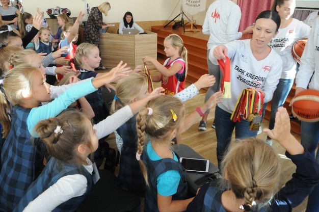 "Smagu, kad į susitikimą susirinko daug mergaičių. Tikimės, kad dalis iš jų įsilies į krepšinio treniruotes. Neatmeskime galimybės, kad ateityje bent viena ar kelios iš jų papildys Lietuvos rinktinės gretas. Aš pati krepšinį pradėjau lankyti vos nuo šešerių metukų, o sporto salėje lankiausi dar anksčiau, kadangi krepšinio trenere dirba mano";, - pasakojo Erika Kregždytė.