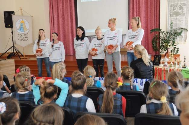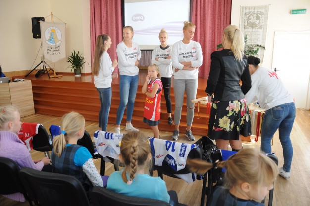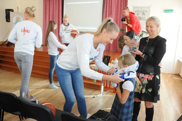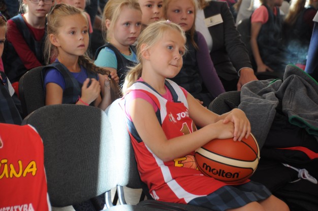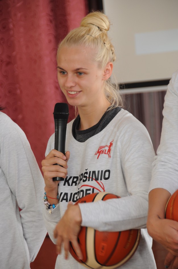 Lietuvos jaunimo rinktinės narė Erika Kregždytė džiaugėsi mokyklų mergaičių aktyvumu ir noru kuo daugiau sužinoti apie moterų krepšinį.