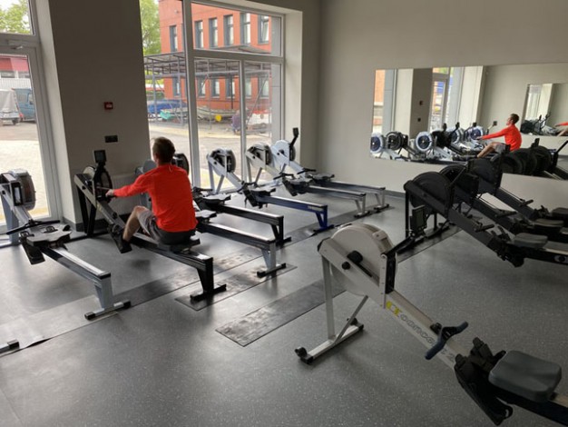 Sporto salėse daug erdvės, treniruokliai pritaikyti atskiroms raumenų grupėms. Irklavimo treniruoklių salė, kurioje stovi apie 20 "Concept II" ergometrų, 4 dviračiai, realaus irklavimo treniruokliai. Salėse sukabinti veidrodžiai, kuriuose galima stebėti irklavimo techniką.
