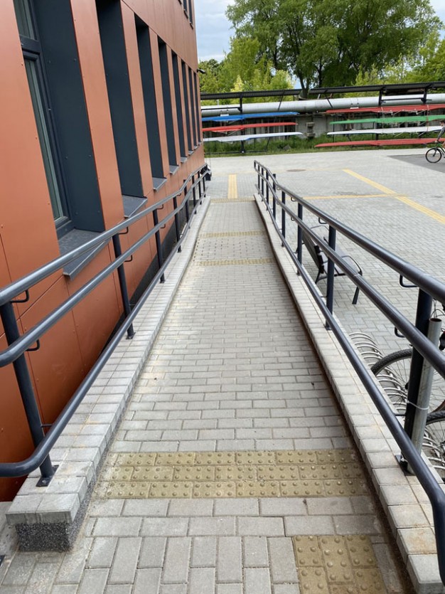 Neįgaliesiems po rekonstrukcijos yra sudarytos tinkamos sąlygos - įrengtos specialiai jiems pritaikytos nuovažos, keltuvas, liftas, tualetai ir dušai.