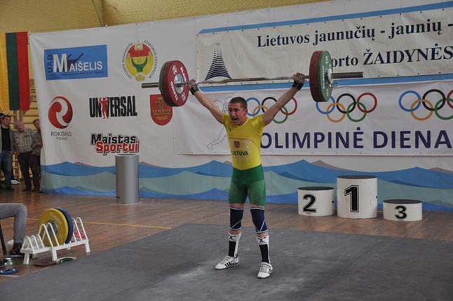 Marijampolietis Žilvinas Žilinskas svorio iki 54 kg varžybose užfiksavo naują rovimo rungties rekordą - 71 kg.