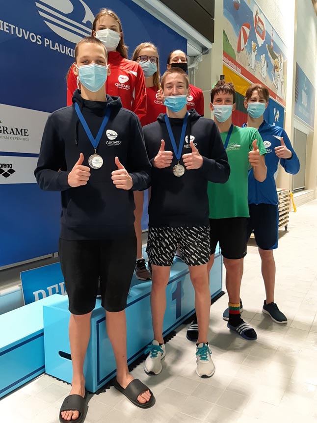 Sidabro medalius iškovojo Ieva Evaltaitė (tr. J.Bogužienė, 200 m krūtine, 2 min. 41,30 sek., 641 tšk.) ir Karolis Olišauskas (tr. Natalija Gurkova ir Artiomas Zaicevas, 400 m kompleksu, 4 min. 49,21 sek., 599 tšk.).