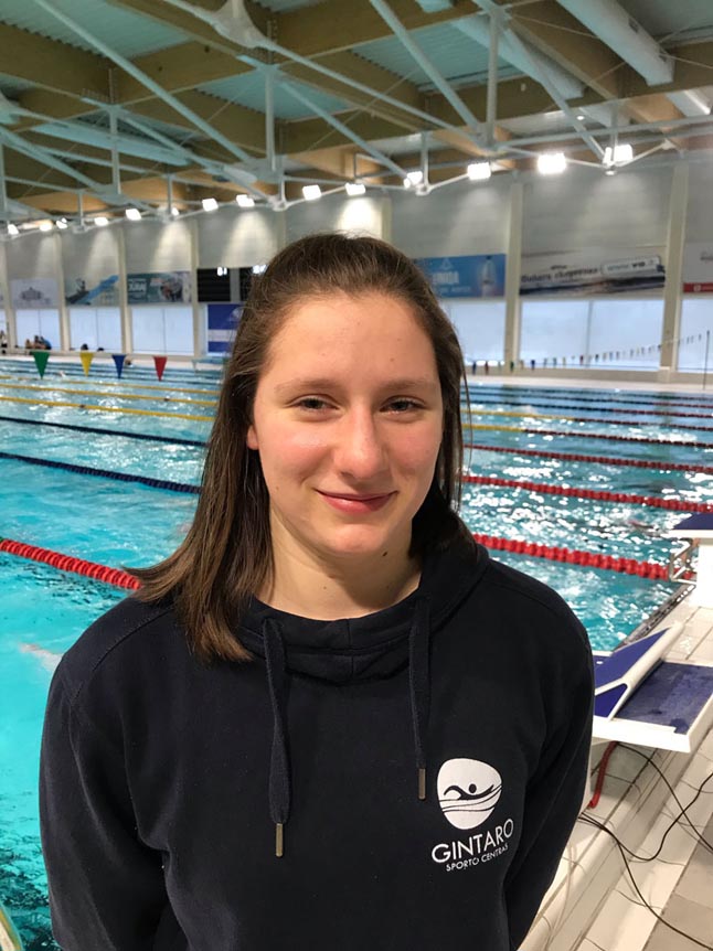 ŠAUNUOLĖ. "Gintaro" sporto centro auklėtinė Aistė Slatkevičiūtė 50 m krūtine įveikė per 33,23 sek. ir įvykdė Lietuvos plaukimo meistro normatyvą.