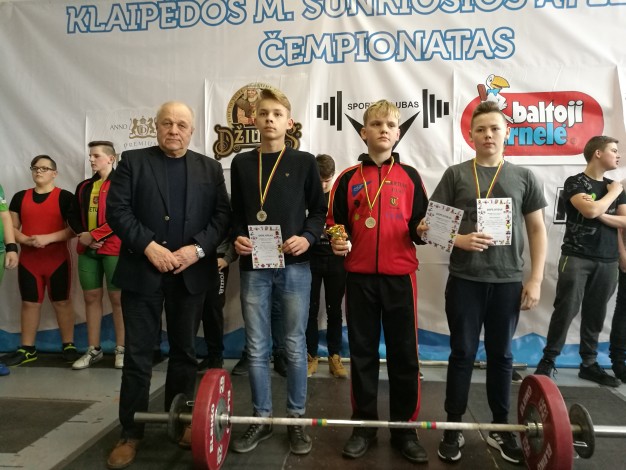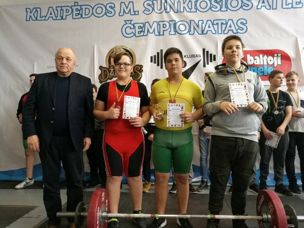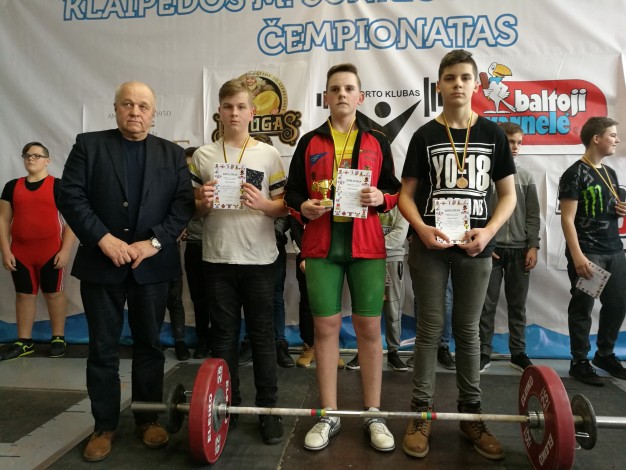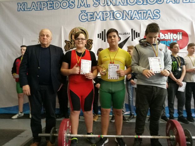 Atskirų svorio grupių čempionais tapo bei aukso medalius ir taures iškovojo šie sportininkai: Emilijus Selezniovas (Klaipėda, dvikovės rezultatas - 63 kg), Pijus Žukauskas (Klaipėda, 42 kg), Mykolas Jucius (Šilutė, 55 kg), Tadas Vaitkevičius (Kretinga, 80 kg), Atas Baliuka (Klaipėda, 102 kg), Aurimas Dainora (Telšiai, 92 kg), Laurynas Kalvaitis (Šilutė, 95 kg), Edvinas Preibys (Telšiai, 93 kg), Mantas Riepšas (Kretinga, 140 kg), Osvaldas Overlingas (Šilutė, 95 kg), Arnas Rudys (Klaipėda, 109 kg), Benas Lukšas (Telšiai, 146 kg), Martynas Ryžkovas (Klaipėda, 138 kg), Ovidijus Stankaitis (Klaipėda, 152 kg) ir tarp mergaičių geriausia buvo Kotryna Selezniova (Klaipėda, 155,52 taškai pagal Sinklerio lentelę).