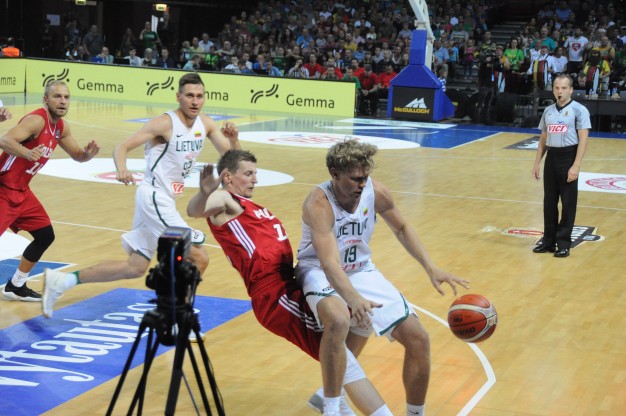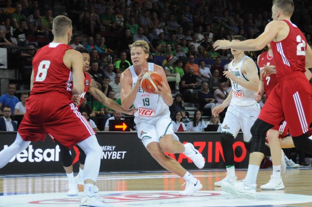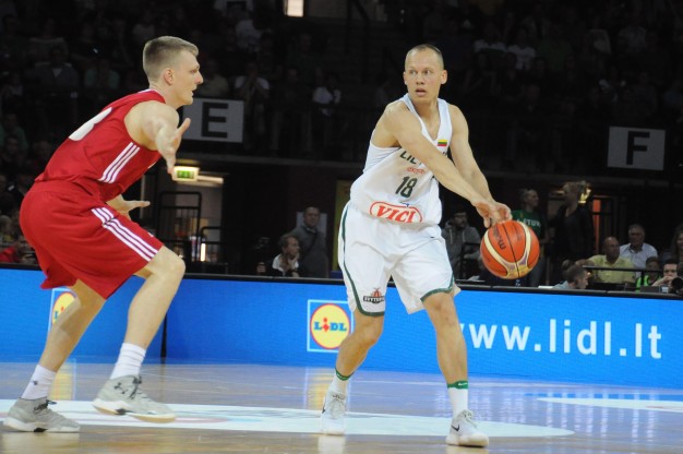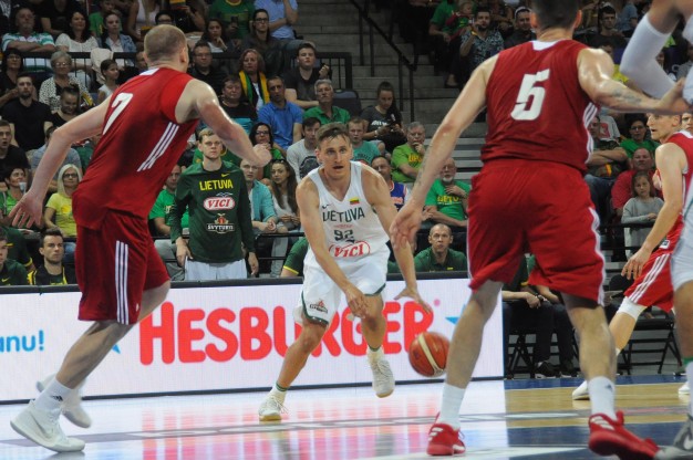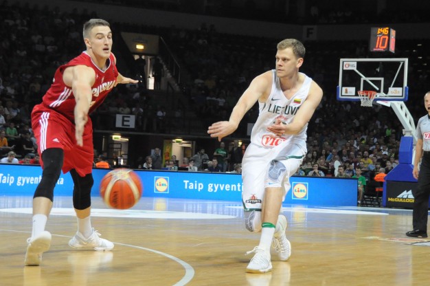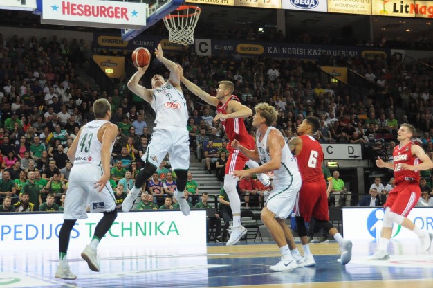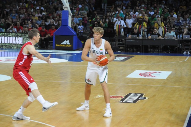 Klaipėdos „Švyturio“ arenoje lietuviai mačą pradėjo tokiu penketuku: Lukas Lekavičius, Artūras Milaknis, Edgaras Ulanovas, Mindaugas Kuzminskas ir Jonas Valančiūnas.