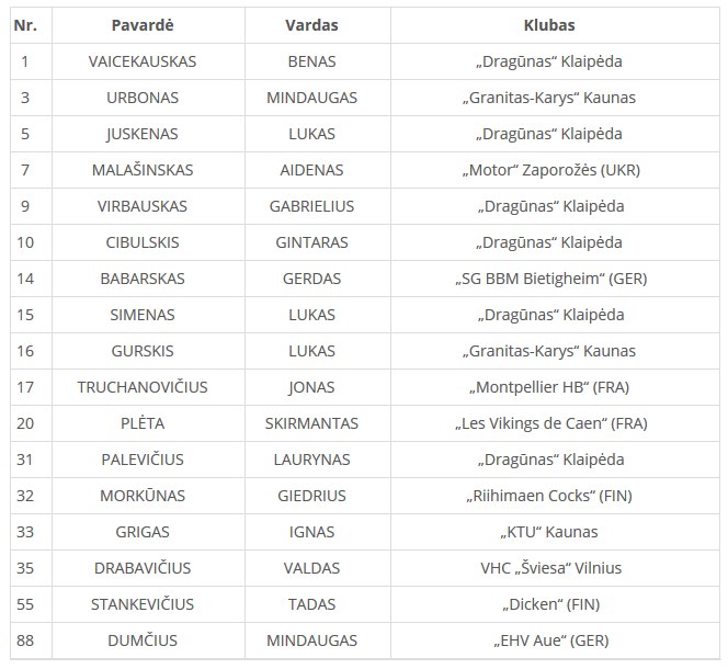Lietuvos vyrų rinktinės sudėtyje šį kartą neišvysime traumuotų Beno Petreikio ir Viliaus Rašimo bei Ispanijoje rungtyniaujančio Rolando Bernatonio. Pirmą kartą rungtynių metu rinktinės marškinėliais užsivilks Klaipėdos „Dragūno“ gretose žaidžiantis Žanas Gabrielius Virbauskas bei „KTU“ ekipos lyderis Ignas Grigas. Pagrindinėje rinktinės sudėtyje bandys įsitvirtinti ir tik draugiškus prieš latvius žaidę vartininkas Benas Vaicekauskas bei centro pozicijos žaidėjas Lukas Juškėnas.