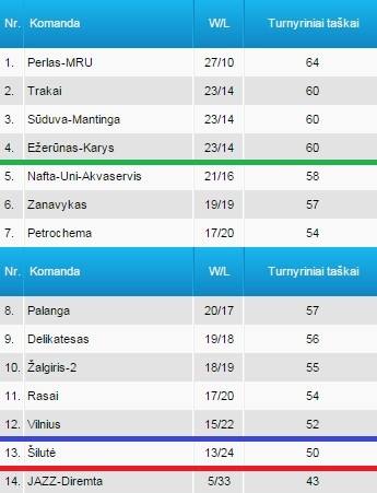 Tiesiai į ketvirtfinalį pateko (1-4 vietos) Vilniaus BC "Perlas-MRU", Krepšinio klubas "KK Trakai", Marijampolės vyrų krepšinio klubas "Sūduva" ir Molėtų "Ežerūnas-Karys".