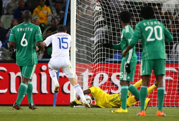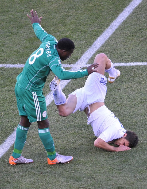 Pietų Afrikos Respublikoje (PAR) vykstančio 19-ojo pasaulio futbolo čempionato antrosiose antrojo turo rungtynėse B grupėje ketvirtadienį 2004 metų Europos čempionė Graikijos rinktinė 2:1 (1:1) įveikė Nigerijos futbolininkus.