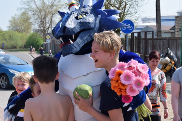 Buvo pastatyti rankinio vartai, vyko įvairūs žaidimai ir atrakcijos, susirinkusiems nuotaikas praskaidrino kabrioletu į šventę atvykęs talismanas Dragas.