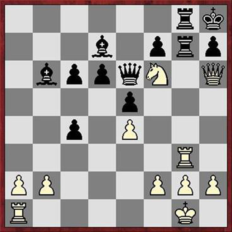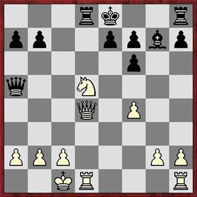 1-oji diagrama. Henrio Rinko etiudas,1926 m. 1. Bc7+ Bd7 2. Vc5+ Kd8 3. Kh6!!+- (jei 3.... V:c7 4. Vf8x, ar 3.... B:c7 4 Vf8+ K? 5. V:b8+-. Negelbsti ir kiti: 3.... Ke8 4. Ve5+ Kd8 5. B:d7+-, ar 3....Va8 4. Vf8+ K? 5. V:a8+-., ar 3.... Vb1 4. Bc8x).