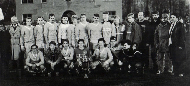 1990-IEJI. Auksinė "Sirijaus" komanda po laimėtų rungtynių Pasvalyje.