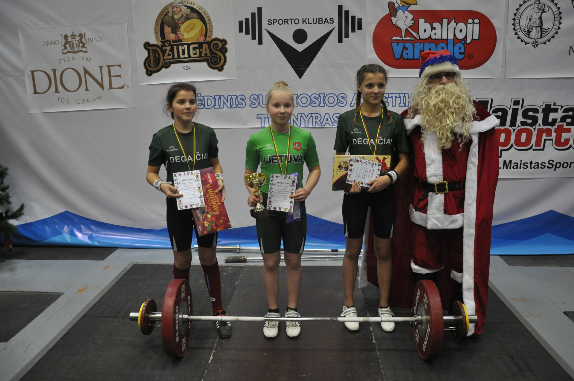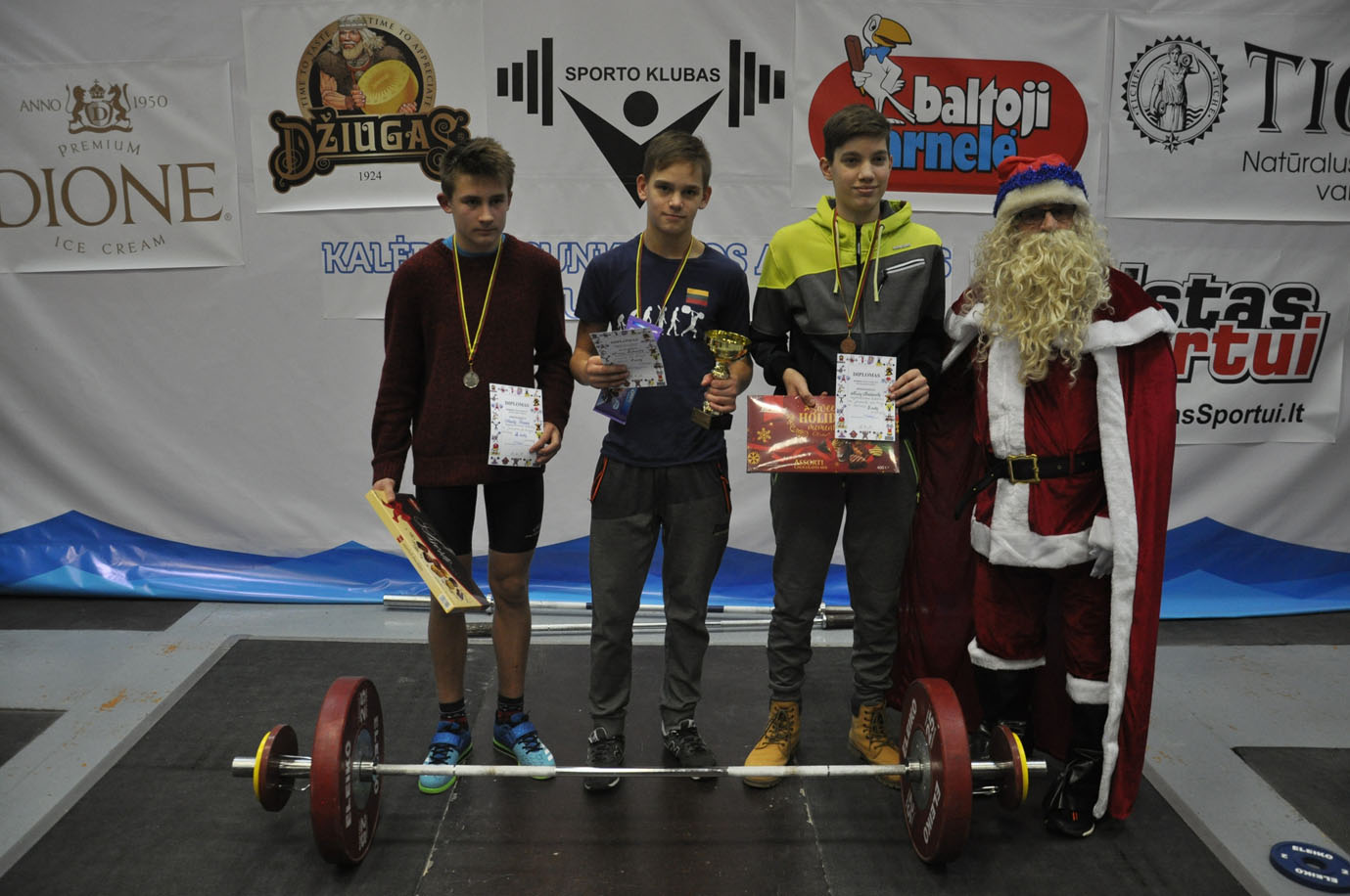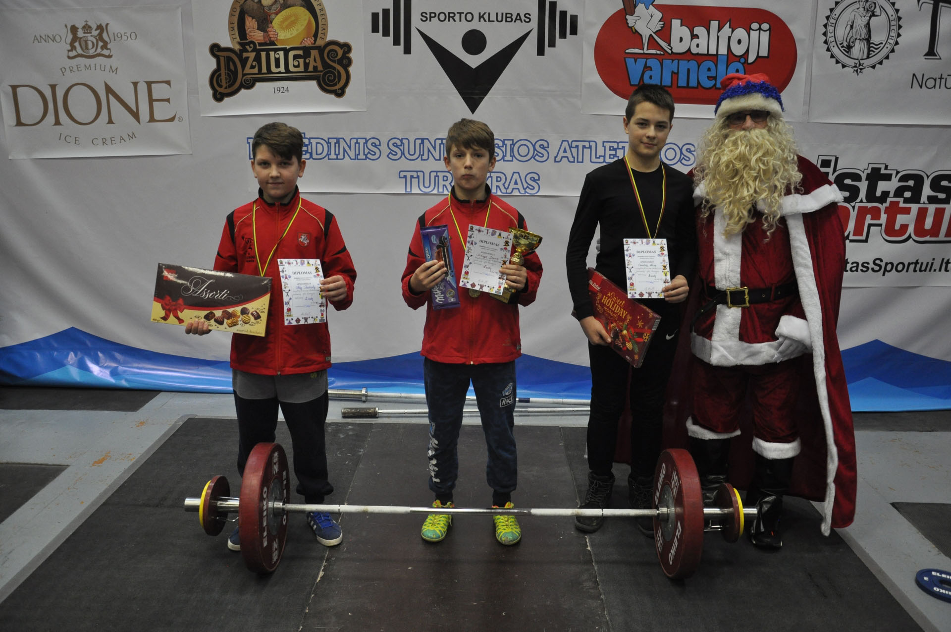 Jaunųjų sunkiaatlečių nuotaikas praskaidrino Kalėdų senelis, sportininkus apdovanojęs "Žemaitijos pieno" įsteigtas prizais ir "Baltoji varnelė" ledais.