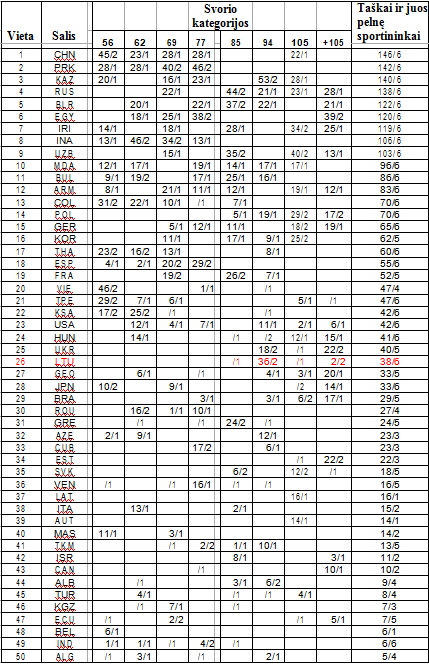 50 geriausių pasaulio sunkiosios atletikos valstybių reitingo lentelė