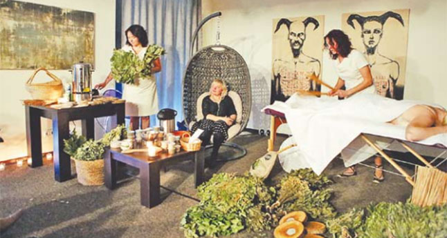 "Kadagio, pelyno, vingiorykštės vantos yra valančios organizmą nuo šlakų ir skysčių pertekliaus, liepos, beržo vantos - maitinančios suteikiančios energijos", - pirties paslaptimis dalinosi viešnios ir drąsiausią vakaro dalyvę pakvietė išbandyti atpalaiduojantį vibroakustinį masažą su žilvičio lazdelėmis.