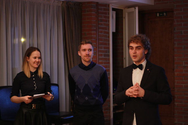 Po šios nuotaikingos vakaro pradžios, į sceną, tarti sveikinimo žodžio, buvo pakviestas Klaipėdos senamiesčio „Rotaract“ klubo viceprezidentas Audrius Knolis. Palydėtas gausiais susirinkusiųjų aplodismentais, viceprezidentas oratoriaus „tribūną“ užleido Rotary akademijos koordinatorei Editai Kentrei. Buvo aptarti jau pasiekti rezultatai, pranešta apie dar laukiančius darbus, naujus iššūkius. Tačiau Rotary akademijos studentai taip pat turėjo paruošti „namų darbus“. Kaip tik po Editos pranešimo jie buvo pateikti – studentai pristatė linksmą ir visus susirinkusiuosius įtraukiantį žaidimą.