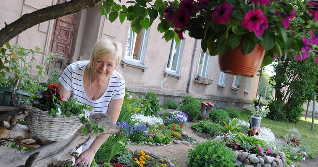 MALONUMAS. Prie Žalgirio g. 5 įrengto gėlyno savininkė Birutė Šlepetienė teigė, jog ji gyvena pirmame aukšte, tad žiūrėti į dilgėles - ne jai. Gėlių sodinimas ir jų priežiūra moteriai yra įprotis ir ji tai daro su malonumu. Eimanto CHACHLOVO nuotr.