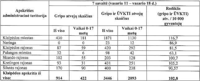 Klaipėdos apskrities gyventojų sergamumas gripu ir ūminėmis viršutinių kvėpavimo takų infekcijomis