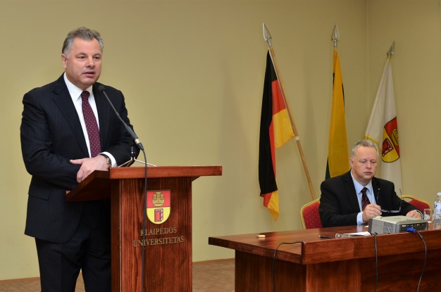 Klauso Mehnerto Europos studijų ir tyrimų instituto vykdomasis direktorius, Vokietijos Federacinės Respublikos garbės konsulas doc. dr. Arūnas Baublys susirinkusiesiems perskaitė Vokietijos Federacijos užsienio reikalų ministerijos sveikinimo laišką Klaipėdos universitetui: „Aš ne pasaulį norėjau pakeisti, aš norėjau padėti žmonėms jį suprasti. Tai pasakė Klausas Mehnertas, instituto, kuris įkurtas 1981 m., steigėjas. Šio instituto tikslas – padėti įvairių tautų žmonėms suprasti vienas kitą, megzti dialogą, bendradarbiauti. Užsienio reikalų ministerija sveikina Klaipėdos universitetą, svetingai priėmus Klauso Mehnerto Europos studijų ir tyrimų institutą, ir remia šią idėją finansiškai.“ Laiške rašoma, kad institutas bendradarbiaus su Thomo Manno muziejumi, Simono Dacho namais ir kt. vietomis, kur Lietuvoje ir regione puoselėjama vokiečių kultūra.