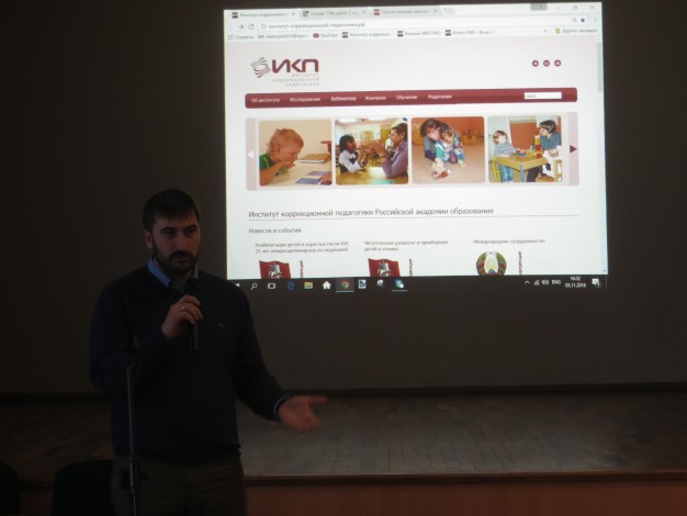 Pedagogikos mokslų kandidatas Ilja Kukuškin pristatė klausytojams Korekcinės pedagogikos instituto elektroninę biblioteką, kurioje galima nemokamai naudotis daugiau nei 1500 leidinių, sukurtų garsios Rusijos defektologijos mokyklos atstovų per pastarąjį šimtmetį.