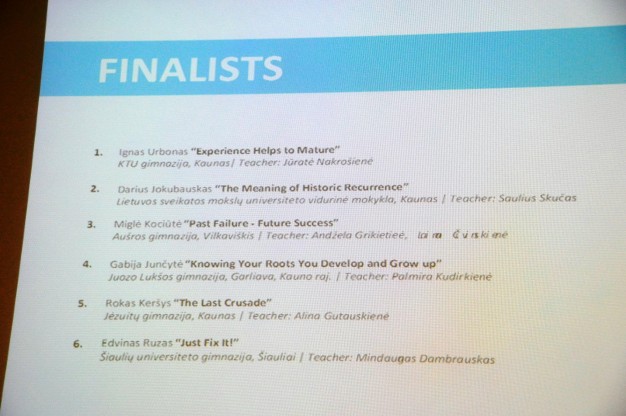 Šalies finale varžėsi 6 moksleiviai iš Kauno, Garliavos, Vilkaviškio ir Šiaulių. Geriausio jaunojo oratoriaus vardą pelnė Kauno Jėzuitų gimnazijos auklėtinis Rokas Keršys, taip pat susilaukęs ir daugiausiai publikos simpatijų. R. Keršio mokytoja Alina Gutauskienė buvo pagerbta pirmąkart teiktu apdovanojimu daugiausiai moksleivių konkursui per paskutinius 5 metus parengusiam mokytojui.