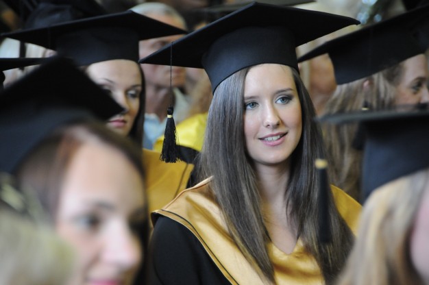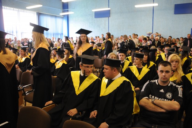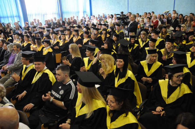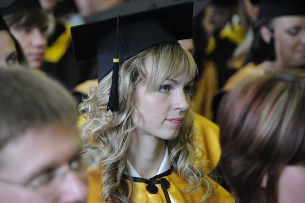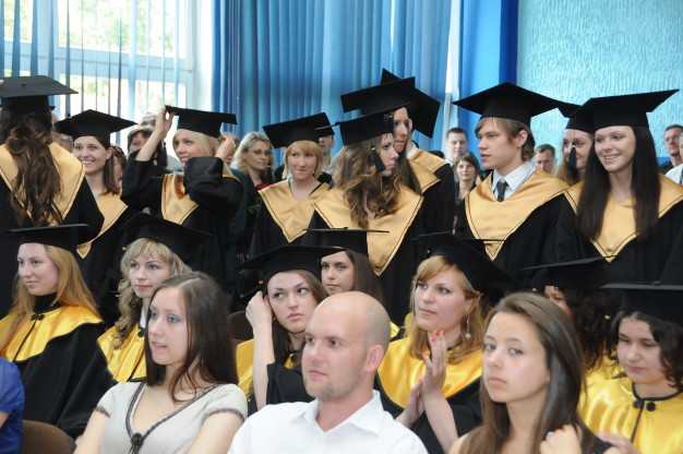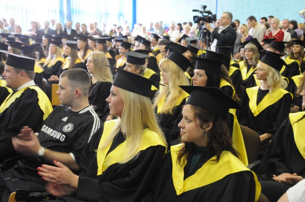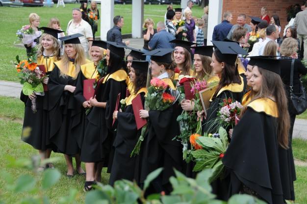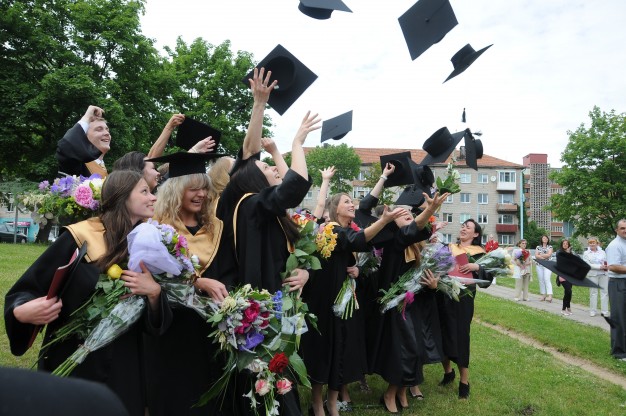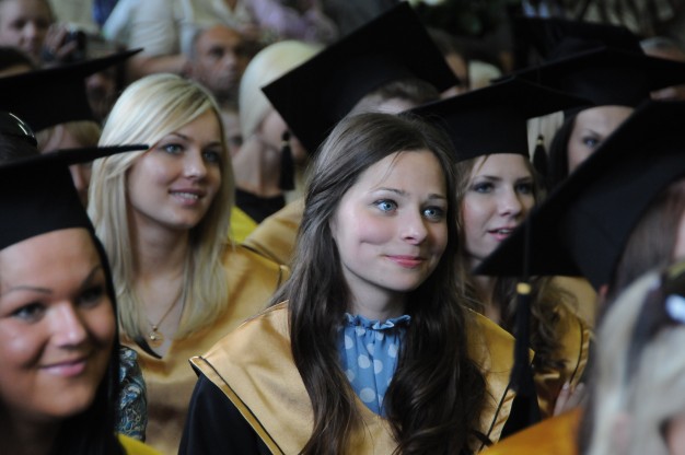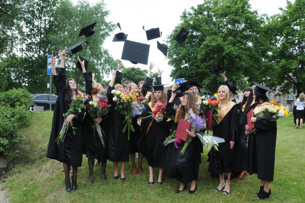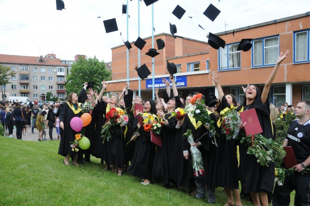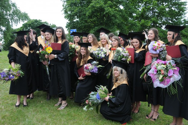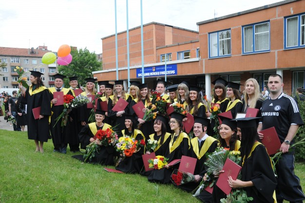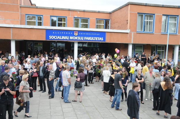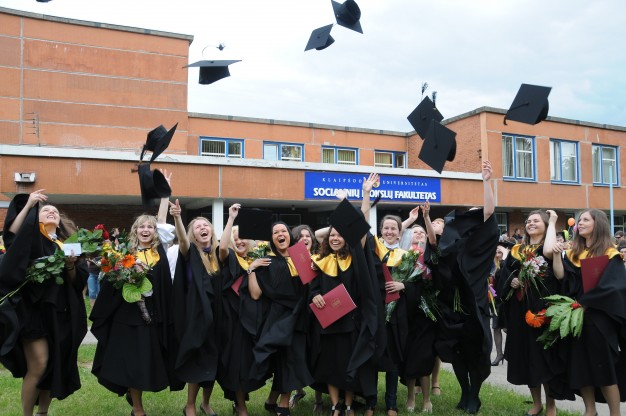 Dalis KU Socialinių mokslų fakulteto studentų jau džiaugiasi įteiktais, jų studijų vaisius vainikuojančiais diplomais.