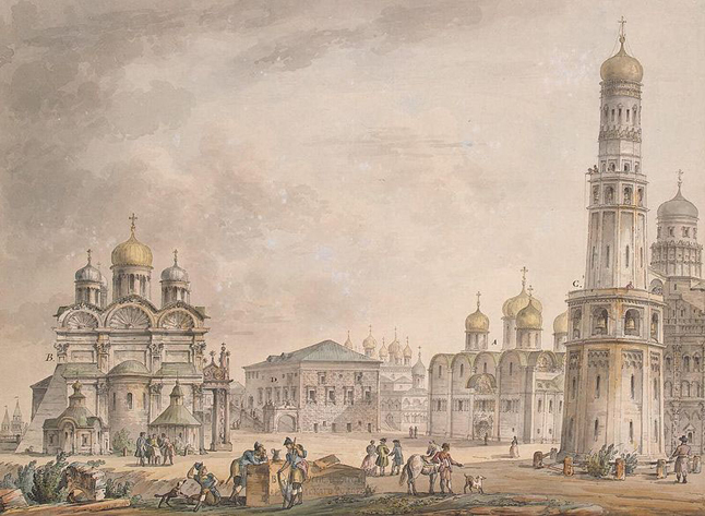 ARKANGELO katedra (matoma kairėje), nutapyta 1797 m. italo Džiakomo Kvarengio (Giacomo Quarenghi).