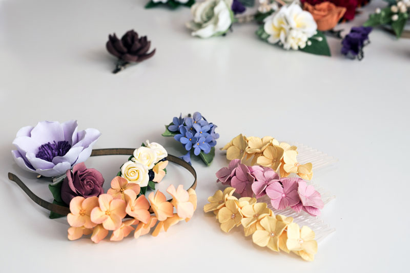 HOBIS. Visos puokštės - rankų darbo, nulipdytos iš polimerinio molio.