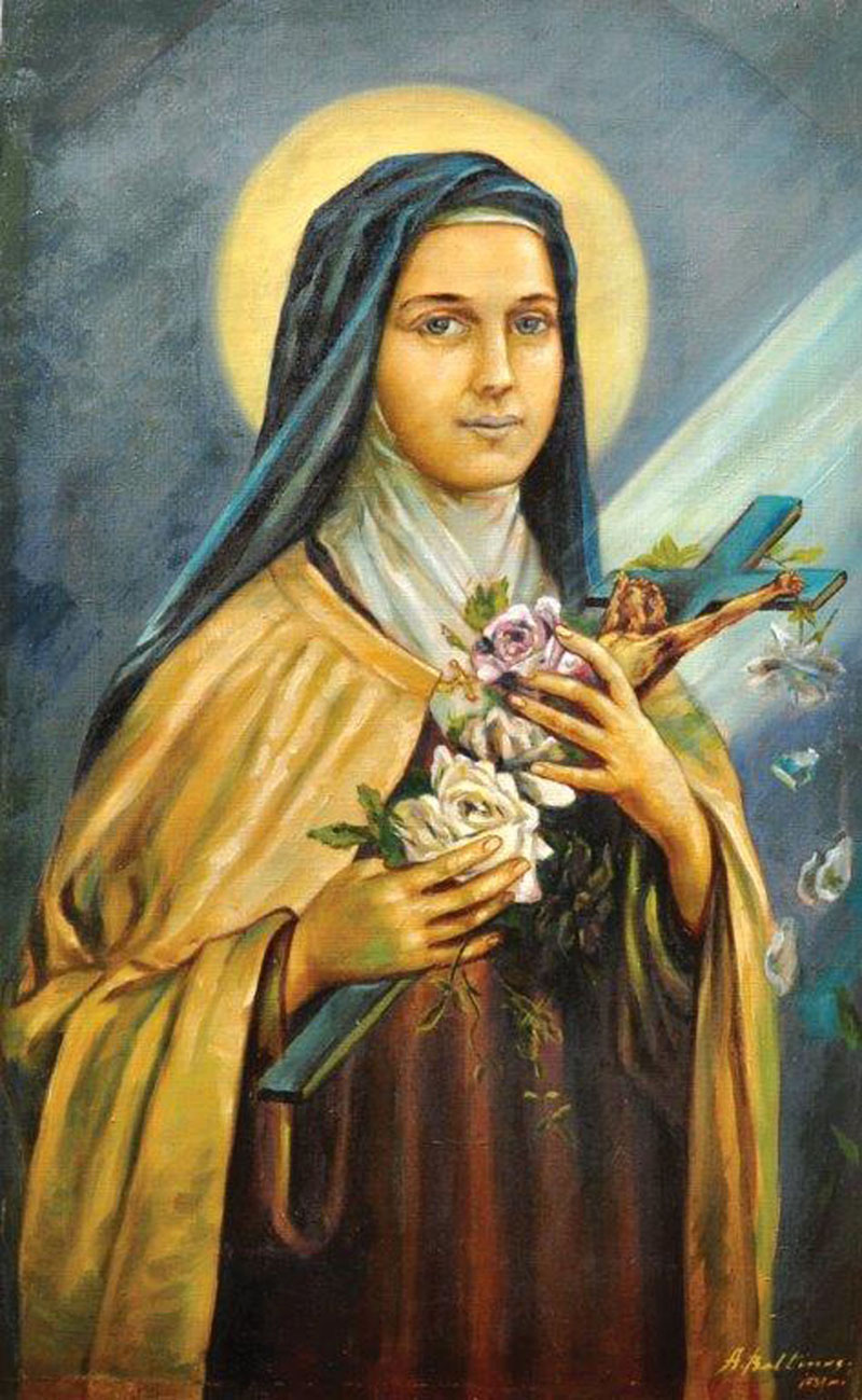 Šv. Kūdikėlio Jėzaus Teresė (1873-1897 m.) - tikrasis vardas Teresa Marten, prancūzė, dar vadinama šventąja Terese iš Lizjė, savo gyvenimą paskyrė Dievui, nuo penkiolikos metų tapusi karmelite vienuole. Po 7 metų ji susirgo tuberkulioze ir 1897 m. mirė būdama tik 24 metų. Paskutinius savo gyvenimo metus paskyrė autobiografinei knygai apie savo gyvenimą bei tikėjimą. Praėjus metams po mirties buvo išleista knyga "Vienos sielos istorija". Tik 2 tūkst. egzempliorių tiražu išleista knyga iš karto tapo populiari, netrukus buvo išversta į daugelį pasaulio kalbų. 1907 m. popiežius Pijus X Teresę pavadino "mūsų amžiaus didžiausia šventąja." Šventoji Teresė iš Lizjė 1923 m. buvo beatifikuota, o 1925 m. paskelbta šventąja. 1929 m. prie šventosios kapo Lizjė mieste buvo pastatyta Šv. Teresės bazilika. A. Baltino ant drobės aliejiniais dažais nutapytame 103,5 x 63,4 cm dydžio paveiksle "Šv. Teresėlė" ji vaizduojama iki pusės, vilkinti vyšninės spalvos rūbą, pečius apgaubusi gelsvos spalvos priekyje susegtu apsiaustu. Jos galvą, apsuptą aureole, dengia mėlyna vienuolės skraistė, šv. Teresė rankose laiko baltomis rožėmis, simbolizuojančiomis nekaltybę ir tyrumą, papuoštą kryžių. Iš dešinės paveikslo pusės skersai krenta šviesos pluoštas. Paveikslas buvo pakabintas Švč. Mergelės Marijos altoriaus trečiajame tarpsnyje, kuriame anksčiau minima buvusi Mergelės Marijos su kūdikiu ikona, ir čia yra iki šiol.