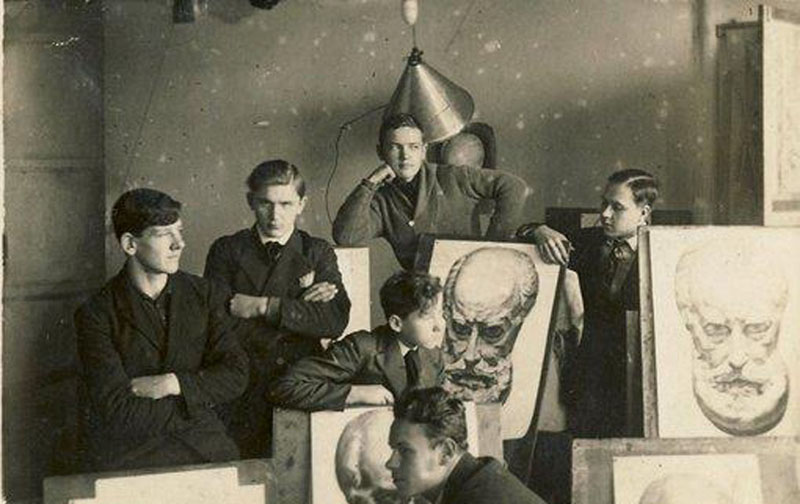 MOKYKLA. 1931-ieji. Kauno meno mokyklos pirmame kurse. Antras iš kairės - Alfonsas Baltinas.