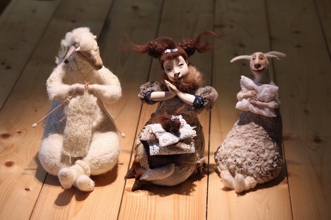 Turiu draugę, kuri išmokė mane velti, ir padariau tarsi poetinę metaforą - avį, kuri mezga kojines iš savo pačios vilnos. Lėlės kalba, yra labai įdomios ir kaprizingos, sakykim, sugalvoji, kokia ji bus, bet proceso metu daro grimasas, keičiasi mimika, judesių išraiška. Sučiauptos lūpos - akys juokiasi, pakeltos rankos ar susigūžusi - tai emocija, parodanti tam tikrą būseną.