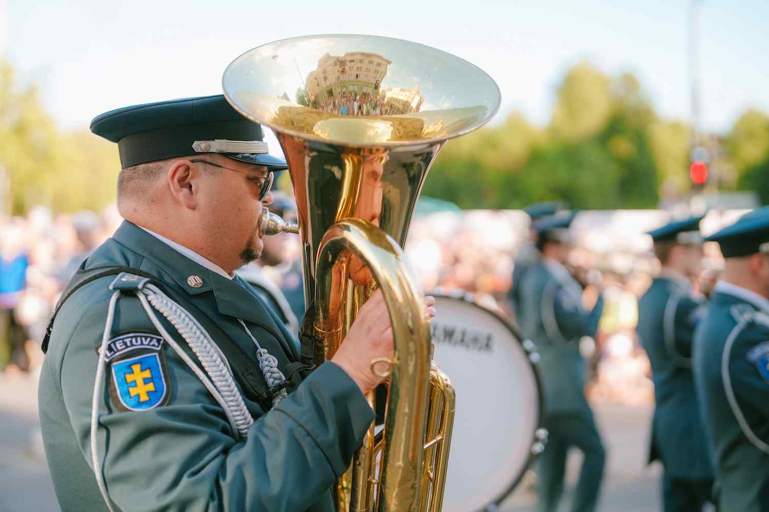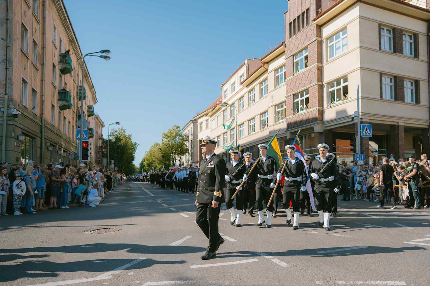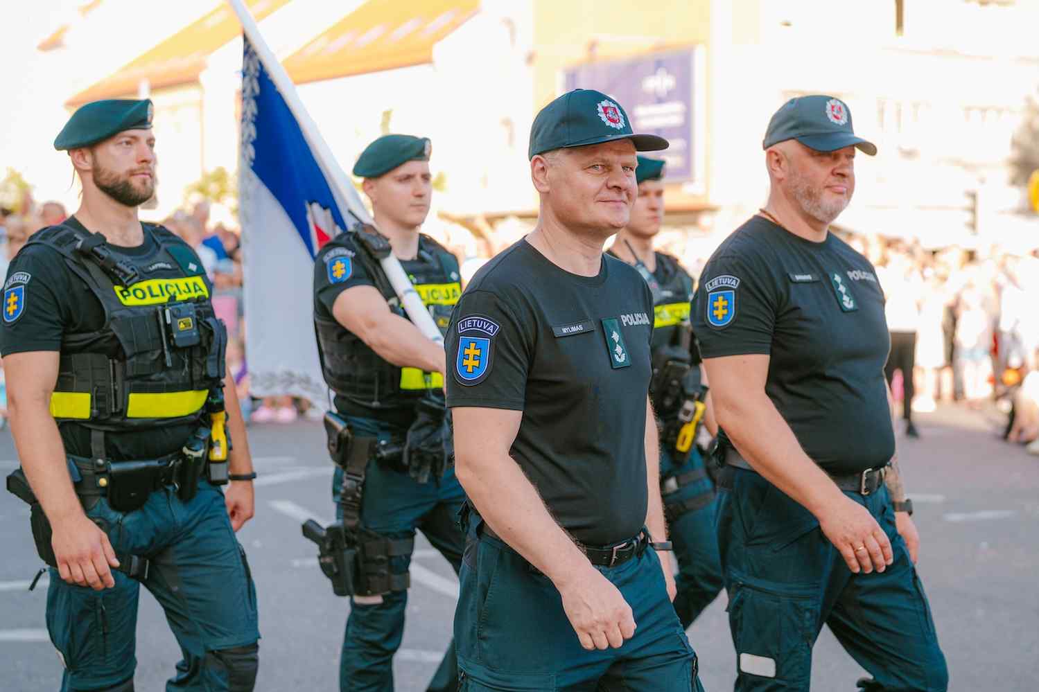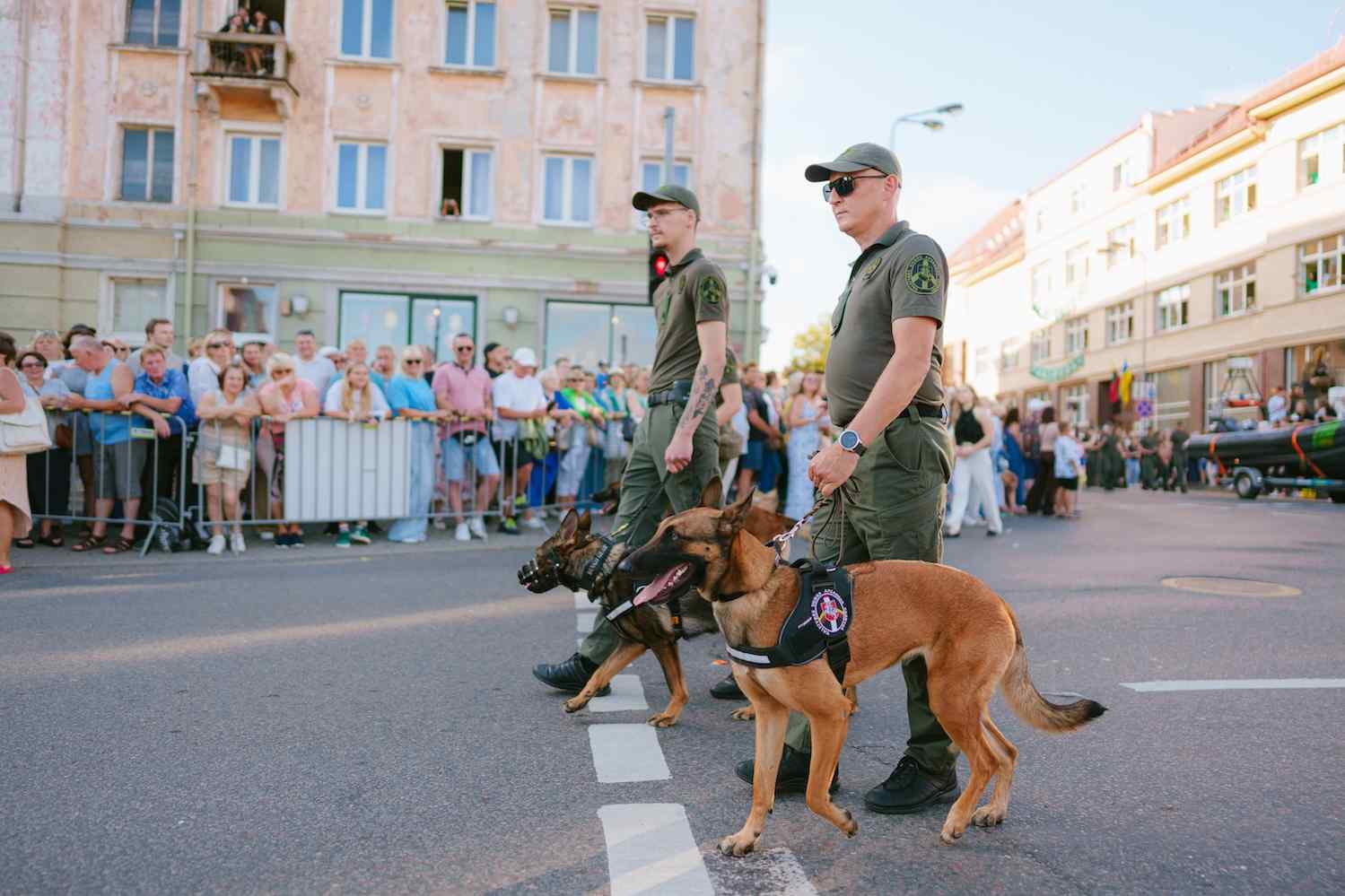 Lietuvos policija žengė kartu su orkestru ir tarnybiniais šunimis – užtikrindami saugumą ne tik šventės metu, bet ir kasdienybėje. Kariuomenės daliniai – pėstininkų brigada „Žemaitija“, dragūnų batalionas ir KASP atstovai – žygiavo tvirtai, garbingai, drauge su sąjungininkais.
