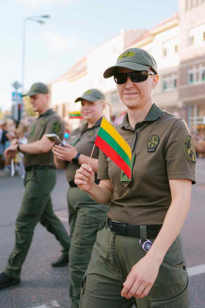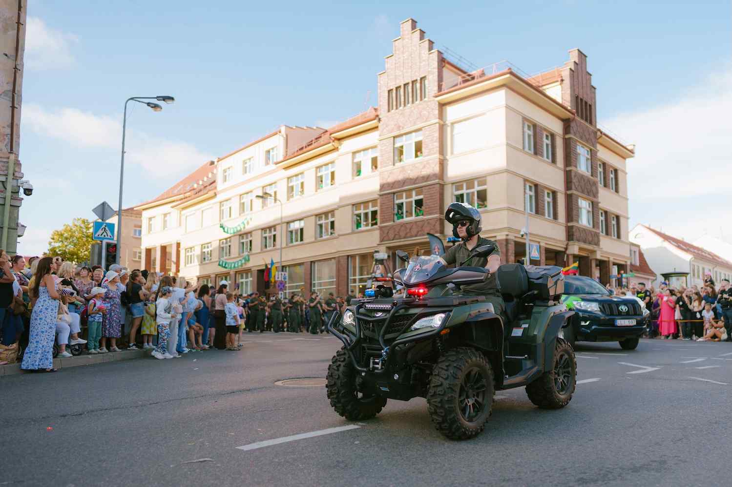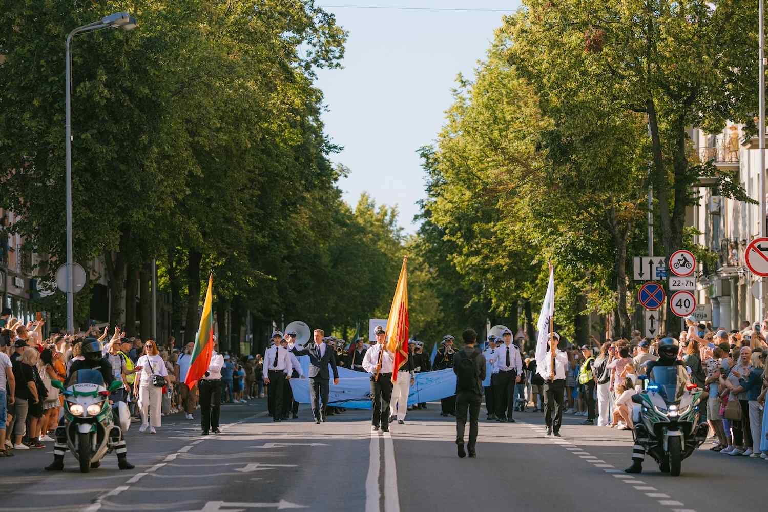 Lietuvos policija žengė kartu su orkestru ir tarnybiniais šunimis – užtikrindami saugumą ne tik šventės metu, bet ir kasdienybėje. Kariuomenės daliniai – pėstininkų brigada „Žemaitija“, dragūnų batalionas ir KASP atstovai – žygiavo tvirtai, garbingai, drauge su sąjungininkais.